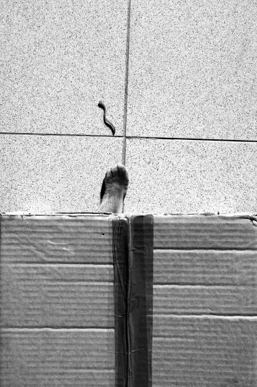 Una mirada llena de ironía y juegos visuales que llevan al que mira a darse un tiempo ante cada una de ellas para encontrar su punto en común, su reflejo cotidiano y natural en el otro. A medio camino entre el diario íntimo y la postfotografía, David Salcedo articula la historia de una ruptura en su proyecto 3, en el que el tema tan manido del gato se muestra de una forma diferente y adquiere un nuevo sentido gracias al ritmo que le aportan tan solo dos frases. La sencillez de medios caracteriza toda su trayectoria y se materializa en cada imagen.